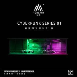 Bring futuristic atmosphere and neon-lit realism to your 1:64 scale collection with the MoreArt Cyberpunk Series 1 LED Diorama. Inspired by dystopian cityscapes and cyberpunk aesthetics, this display base delivers a striking blend of urban grit, glowing signage, and cinematic depth—perfect for showcasing modern and concept die-cast vehicles. Constructed from high-quality PVC, the diorama features…