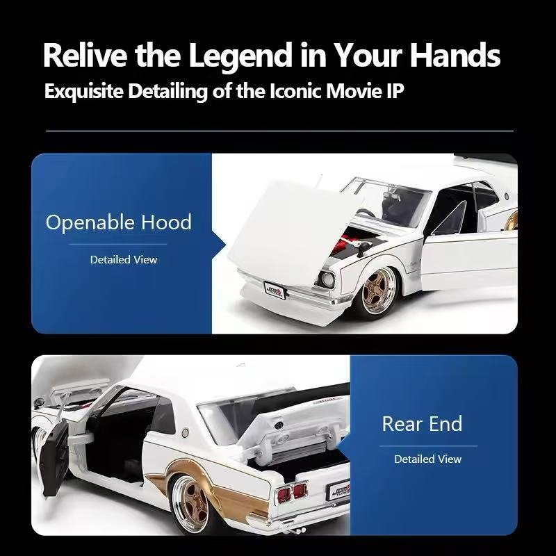 Featuring the original racing-inspired styling, this die-cast model showcases the Skyline’s clean lines, iconic front grille, and sporty stance. Constructed from durable die-cast metal with high-quality plastic components, it offers a premium feel while highlighting the car’s classic JDM charm.
