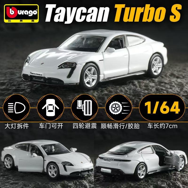 Add the Bburago 1/64 Porsche Taycan Turbo S to your collection — a sleek, modern, and meticulously detailed diecast model that celebrates Porsche’s leap into the electric performance era.