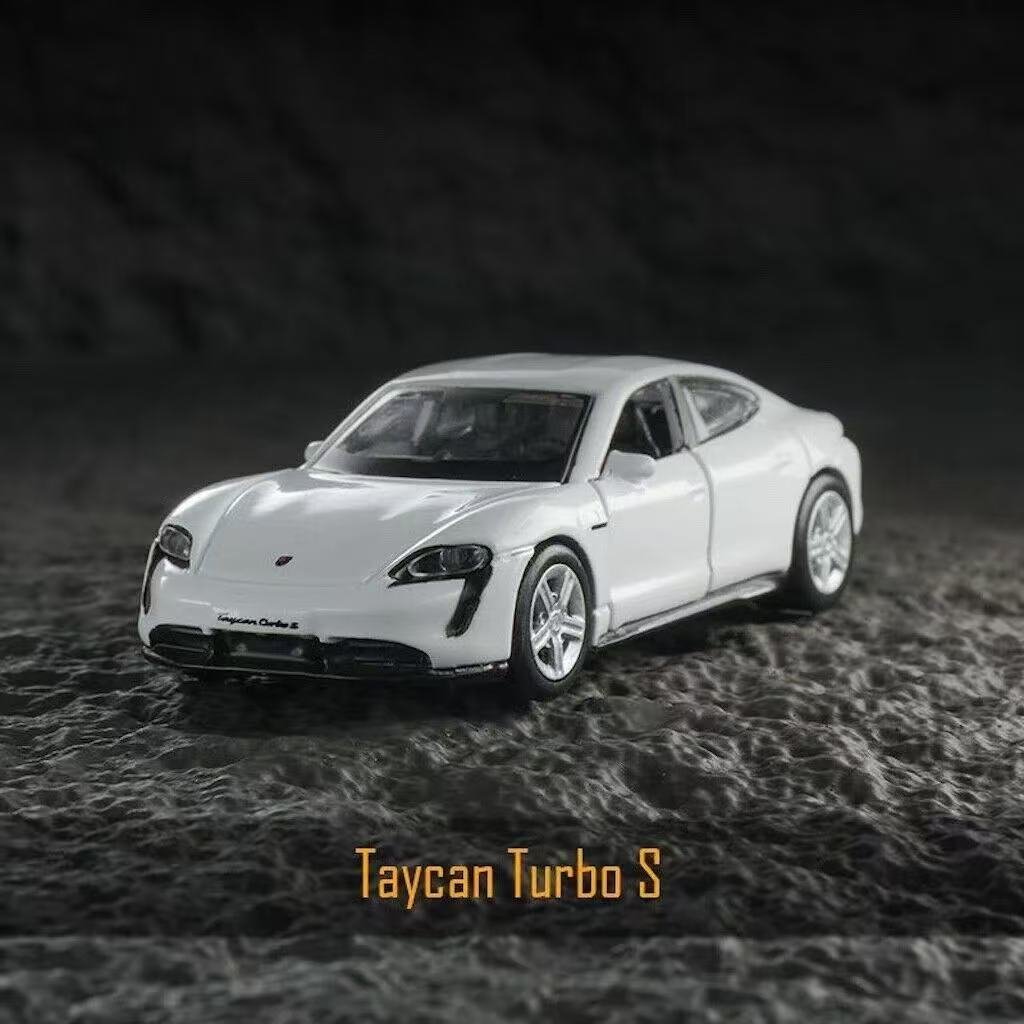 Crafted from durable metal alloy, this miniature faithfully reproduces the Taycan Turbo S’s aerodynamic profile, sculpted body lines, smooth surfaces, and unmistakable Porsche performance stance.