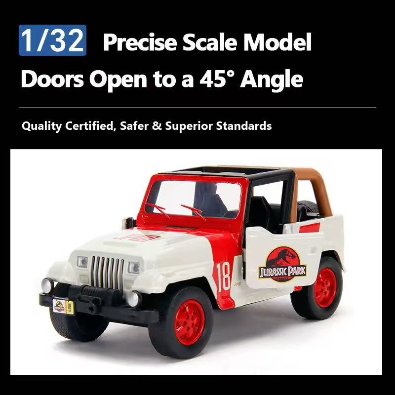 Bring adventure home with this 1:32 scale replica of the iconic Jeep Wrangler, inspired by its appearance in Jurassic World. Expertly crafted by Jada Toys, this collectible captures the rugged spirit and cinematic detail of the park’s official utility vehicle.