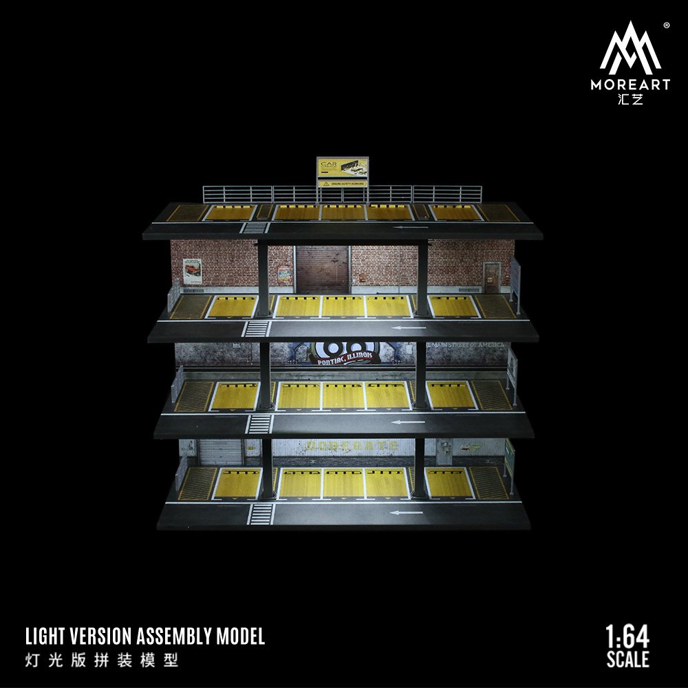Add bold industrial character to your 1:64 scale collection with the MoreArt Four-Story American Steel Frame Garage with LED Diorama (MO922002). Inspired by classic American multi-level parking structures, this display piece delivers strong architectural presence and urban realism, making it an eye-catching centerpiece for premium die-cast showcases.