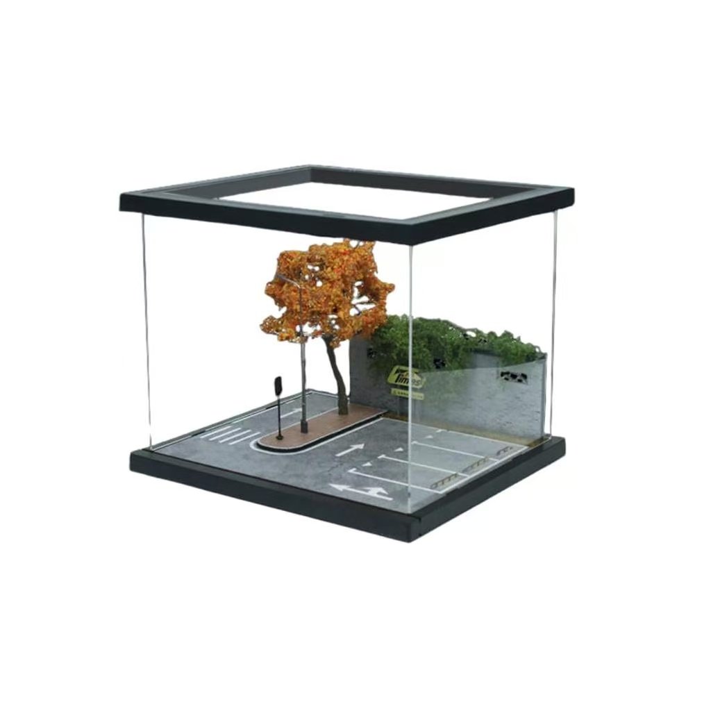 Crafted from high-quality PVC, the diorama features a detailed street scene layout with integrated LED lighting that provides balanced, realistic illumination. A built-in tree element adds organic texture and visual depth, softening the urban environment and enhancing the overall sense of scale. The assembly-style design allows for a dynamic, layered display suitable for collectors and diorama photography.