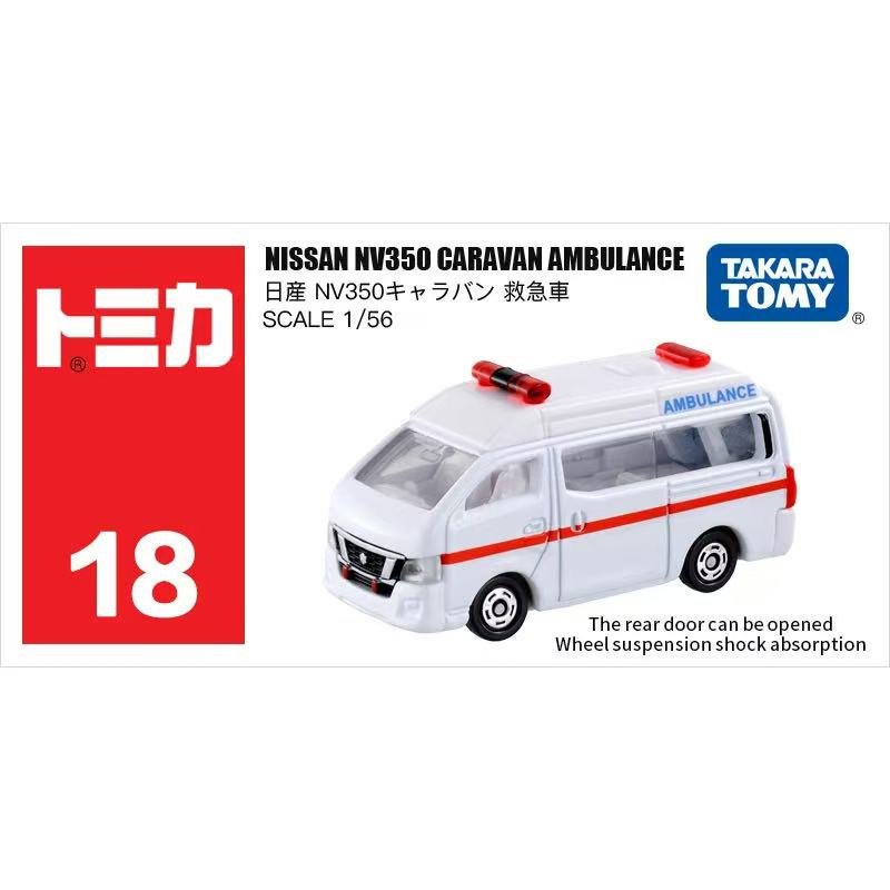 Bring emergency-vehicle realism to your collection with the Tomica No.18 Nissan NV350 Caravan Ambulance (1/56) — a finely detailed diecast miniature crafted with Tomica’s signature precision and durability. This model captures the professional, purpose-built look of the NV350 Ambulance in a compact and display-friendly scale.