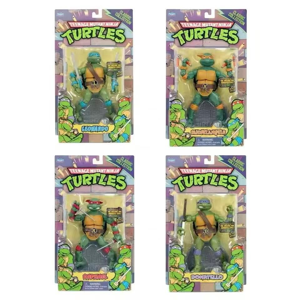 Bring home the nostalgia with the Teenage Mutant Ninja Turtles 1988 Classic Collection by Playmates Toys. These 16 cm action figures—Leonardo, Donatello, Raphael & Michelangelo—feature 34 points of articulation for realistic posing and play.