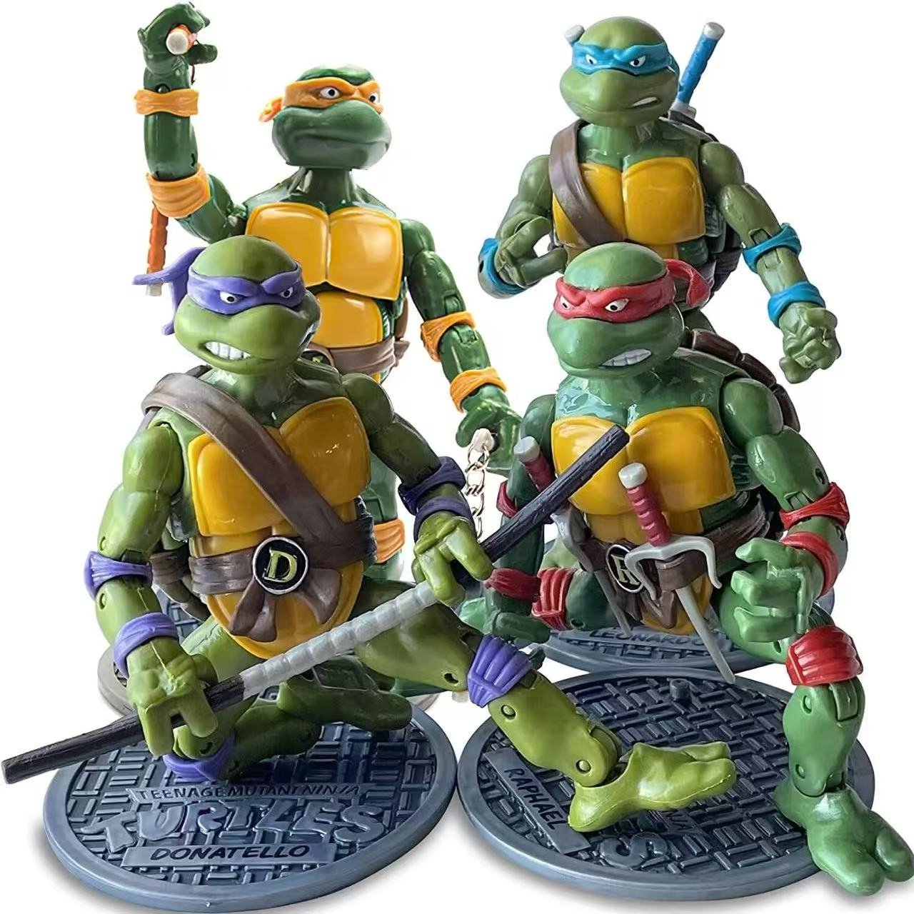 Each Turtle comes fully equipped with their signature weapons, faithfully recreated to match the classic cartoon and toy designs. Whether you’re striking action poses, recreating scenes, or displaying them on your shelf, these figures deliver nostalgia with collector-grade quality.